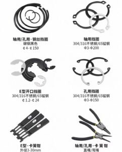 Applications: In mechanical equipment manufacturing, stainless steel retaining rings are widely used for securing bearings, gears, pulleys, bushings, and rotating components on shafts or within housings. Proper groove engagement and elastic retention help maintain accurate axial positioning and prevent component displacement during machine operation.