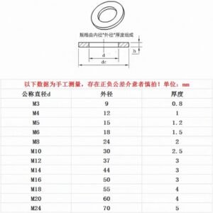 Standard flat washer dimensions are manufactured according to DIN, ISO and ASTM standards. Custom drawings and samples are accepted.